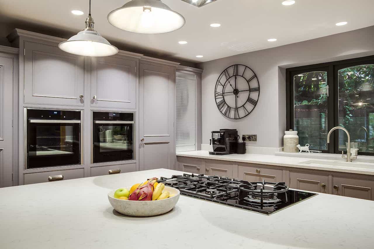These clients moved from Ashington to Canterbury for a new job and asked us to follow them. The first priority in their brand new house was to completely remove the developer's kitchen and start from scratch. We designed a completely new layout for the kitchen and utility room, to perfectly suit their requirements. We also designed lighting and helped with colours and finishes. A lovely light room is now a really social space, where they can entertain, cook and enjoy the garden all year round